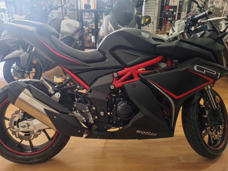 * Wottan GP1 125 RS (2026) (B/A1) /// * Nueva a matricular año 2026 /// * Deportiva 125 /// * Disponibles en Racing Black y Racing White /// * Matriculación no incluida en el precio /// * Motor monocilíndrico DOHC de 4 válvulas /// * 14.4 cv /// * Refrigeración líquida /// * Cambio de 6 velocidades /// * Horquilla invertida de 37 mm /// * Basculante de aluminio /// * Doble disco delantero de 30 mm con pinzas radiales ABS /// * Disco trasero de 240 mm ABS /// * ABS de doble canal /// * Display TFT a color /// * Conectividad Bluetooth /// * Función Mirroring /// * Iluminación FULL LED /// * Puerto USB /// * Chasis multitubular de acero /// * Llantas de 17" /// * 167 kg de peso /// * Depósito con capacidad de 13.5 litros /// * Posibilidad de financiar /// * Recogemos moto como parte del pago