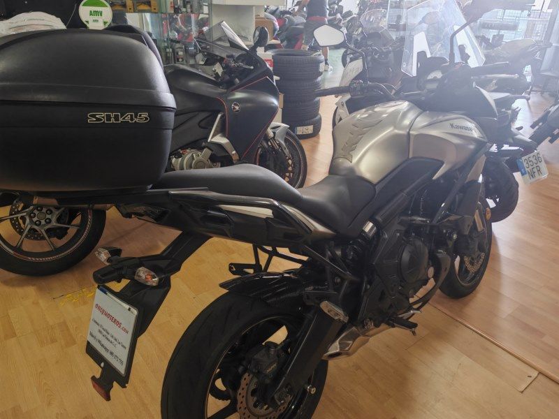 * Kawasaki Versys 650 ABS (2018)(A2/A) /// * 36655 km /// * Año 2018/// * Limitada para A2 /// * 47 cv (69 cv sin limitar) /// * 214 kg /// * Inyección electrónica /// * Refrigeración líquida /// * 6 velocidades /// * ABS independiente /// * 21 litros de capacidad de depósito /// * Pantalla ahumada regulable /// * Tablero de instrumentos con cuentarevoluciones, velocímetro, indicador de combustible y ordenador de abordo. /// * Horquilla invertida de 41 mm regulable en precarga y extensión /// * Mono amortiguador regulable en precarga y con 145 mm de recorrido /// * 2 Discos de freno delanteros de 300 mm semi-flotantes con pinas Nissin de dos pistones en la rueda delantera y de 250 mm de un pistón en la trasera /// * Baúl /// * Traspaso no incluido /// * Posibilidad de recoger moto como parte del pago /// * Posibilidad de financiar.